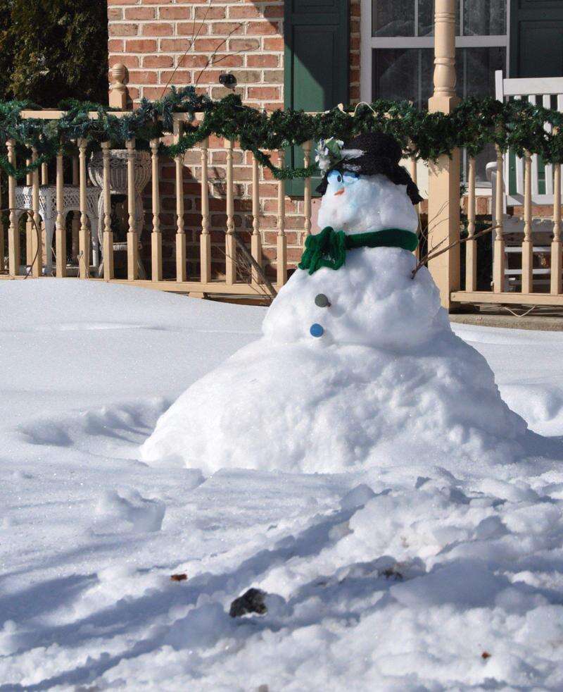 Built by youngsters on a recent snow day when schools were closed due to winter weather, the snowman stands alone, out in the cold, with no one to play with after school resumes and those who built him return to their classrooms.