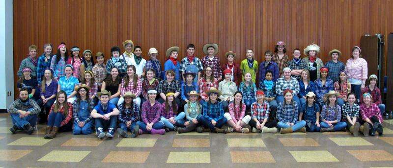 Students and teachers get into the spirit of Ozark Mountain Day at Salisbury Middle School Feb. 21 as they complete the book "Where the Red Fern Grows" by Wilson Rawls. The story revolves around a 10-year-old boy from the Ozarks during the Great Depression and his two hunting hounds Old Dan and Little Ann. The story follows the boy's trials and tribulations and the many emotions surrounding these dogs. Teacher Beth Prokesch encourages the students to dress in attire like the characters in the book for extra credit.