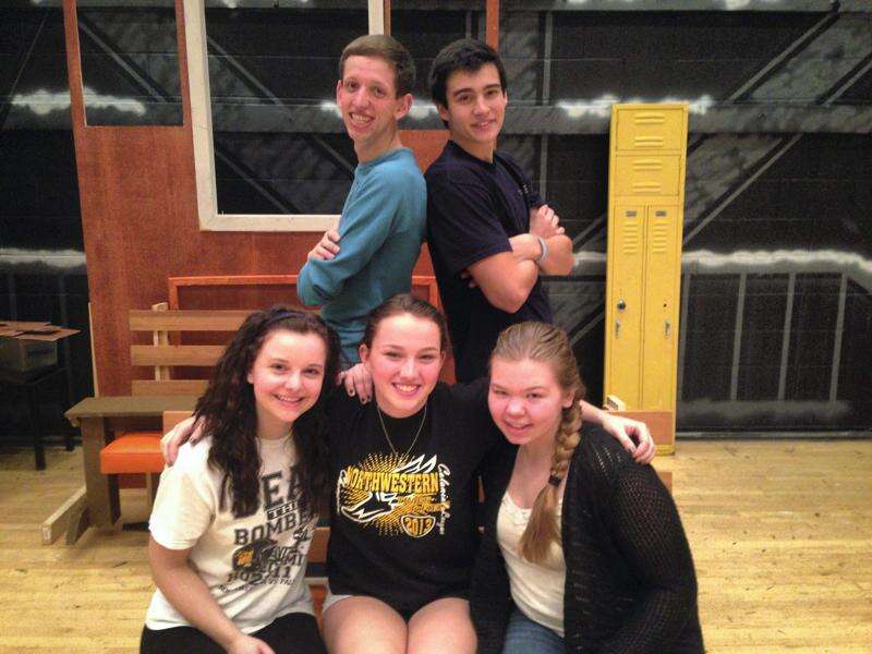 PHOTO BY BILL MUTTIMER Northwestern Lehigh High School 'Footloose' cast, from left, back row: Kurtis Reif (Rev. Shaw Moore) and Alex Bobbyn (Ren McCormack) and, front row, Emily Witt (Rusty), Haley Smith (Ariel Moore) and Daneen Haas (Vi Moore).