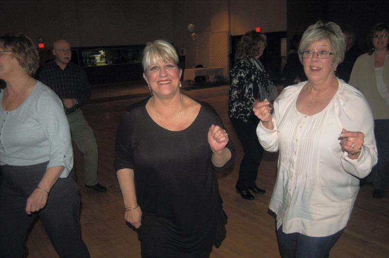 PRESS PHOTOS BY AL RECKER Susan Kiefer of Easton and Nancy Buckman of Allentown hit the dance floor Saturday at the Quota International of Northampton dinner and dance held at the Northampton Memorial Community Center. School's Out Band provided the entertainment for the evening.