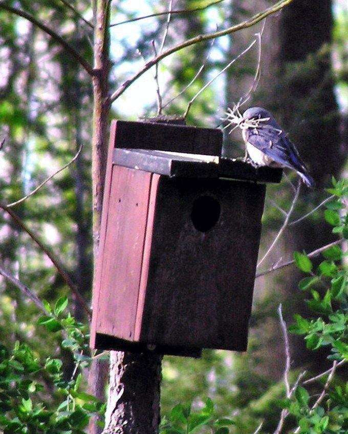 Today, as I write this column, I've been watching a female bluebird taking blades of grass to one of the bluebird nest boxes. The males and females have been dining on suet and hanging out near two of the boxes. It appears that we will have a pair of "the bluebirds of happiness" breeding in our yard again this year. Oh, happy day.