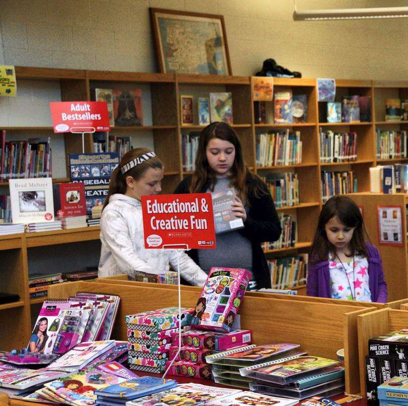 Weisenberg Elementary School's Scholastic Book Fair was April 7-14 in the library. Fifth-grade students Shania Bittner and Madison Wilson, and first-grader Cameron Schmick shop for books.