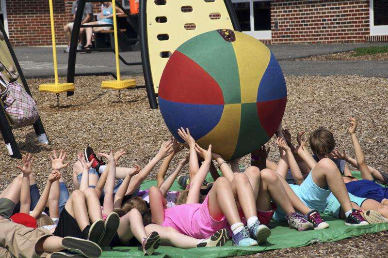 PRESS PHOTOS BY LINDA DEIBERT Play Day at Weisenberg Elementary School was May 13. Organized by physical education teacher Lawrence Talotta, the event was for kindergarten through second grade students. Vivian Weidner's class plays Pass the Earth with a large beach ball.