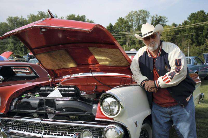 PRESS PHOTO BY STEPHANIE RAPHUN Ron Lokay of Northampton stands proud with his 1955 Ford Fairlane Sunliner convertible, a.k.a 'Ron's Pretty Lady,' in honor of his wife Patti Lokay. The torch red and snowshoe white convertible has been a fun ongoing project for Lokay, but in 2009 it was stripped down to bare metal and everything was redone. The 'Pretty Lady' was displayed at the Faith Lutheran Church's Wheels of Faith Car Show, Whitehal, Aug. 16. Lokay will prepare the vehicle for an upcoming tour at the