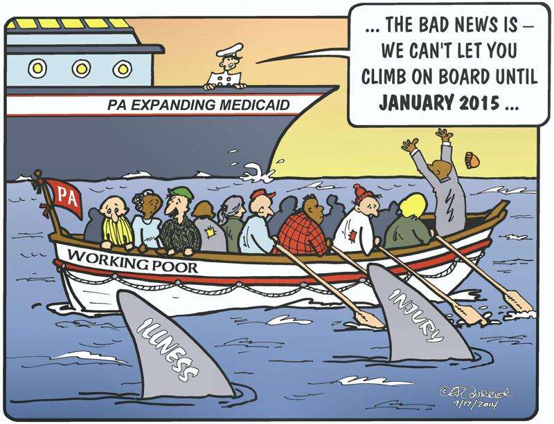Can't climb on board, yet Tweet Published September 18. 2014 12:00AM by The Press Pennsylvania working poor need Medicaid now not January 2015. Copyright 2014
