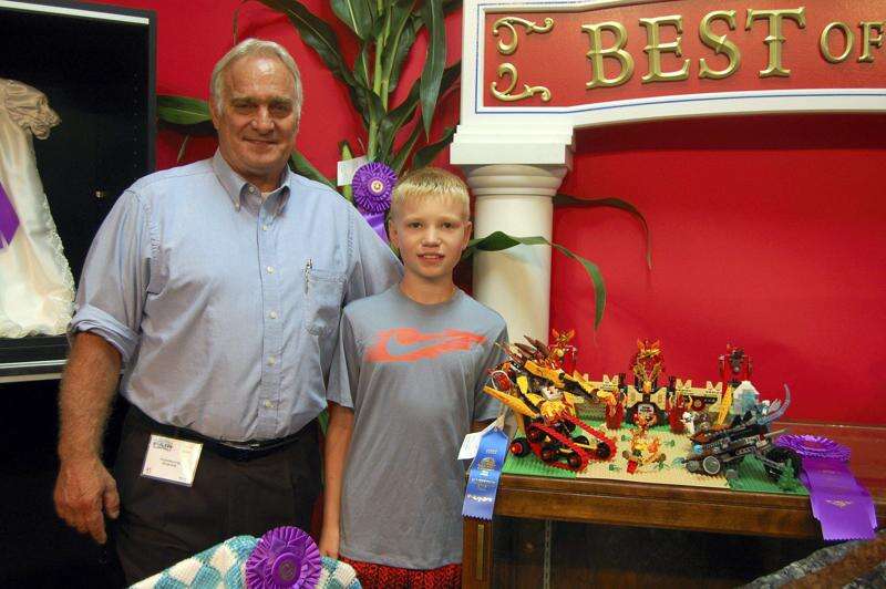 PRESS PHOTOS BY SUSAN BRYANT Pennsylvania Secretary of Agriculture George Greig stands with Zachary Lower of Northampton, who won best of show in the Lego kit-other category at The 2014 Great Allentown Fair held Aug. 26 to Sept. 1.