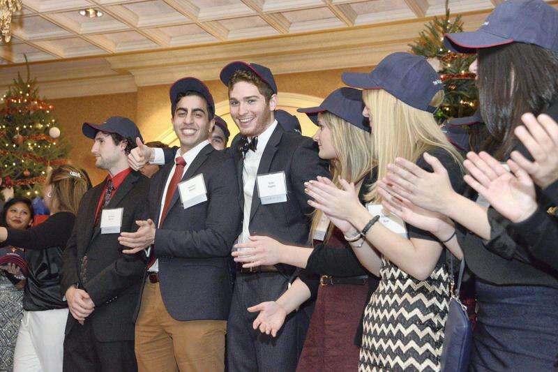 The class of 2018 was welcomed at the St. Luke's holiday reception with Medical School of Temple University/St. Luke's University Health Network baseball caps. Left to right: Richard Sharpe, Allaskar Hasani, Ryan Hughes, Amy Russell and Kelsey Row.