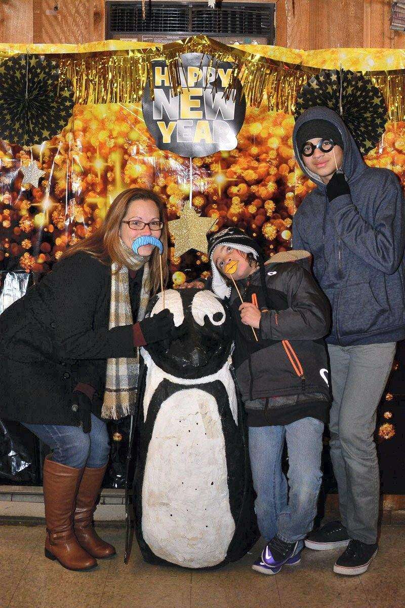 PRESS PHOTOS BY LOU WHEELAND Lehigh Valley Zoo had a Winter Light Spectacular and 30-foot fish drop New Year's Eve. Events included photos with 'Elsa' from the movie 'Frozen' and with Mr. Penguin as well as the Grinch, Olaf from 'Frozen' and Tuxster, the Zoo's mascot. Lynda Deifer with sons Tyson and Logan Clifton, all of Schnecksville, have some New Year's Eve fun.