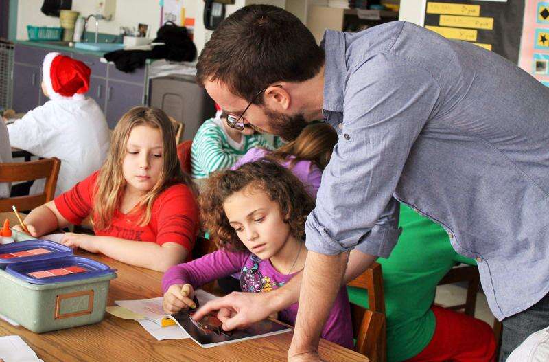 Matthew Twombly, graphics designer and editor at National Geographic, held seminars with third-grade art classes at Siegfried.