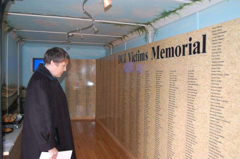 The memorial replicates the stationary Pennsylvania DUI Victims Memorial Garden at the association's headquarters in Harrisburg.