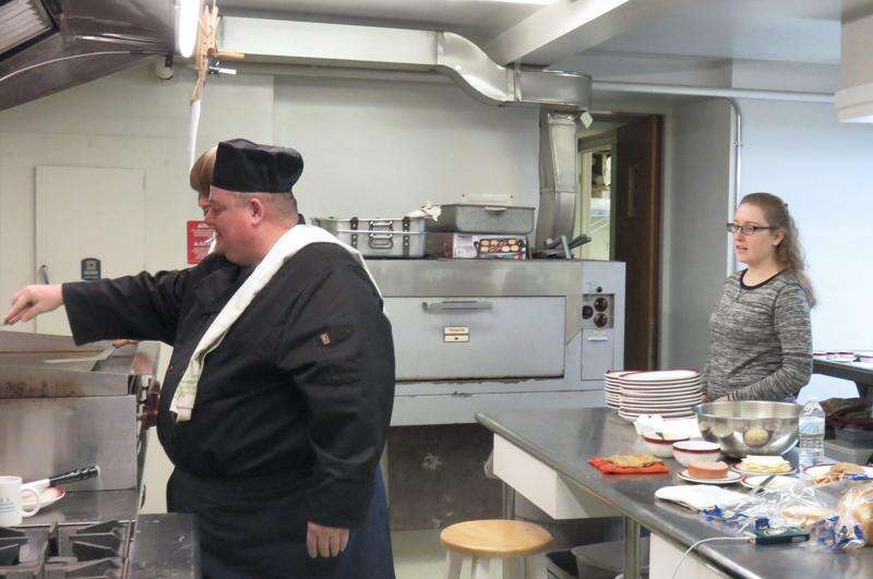 Paul Magargal whips up some delicious scrambled eggs while Spencer Schade and Tabitha Schade assist.