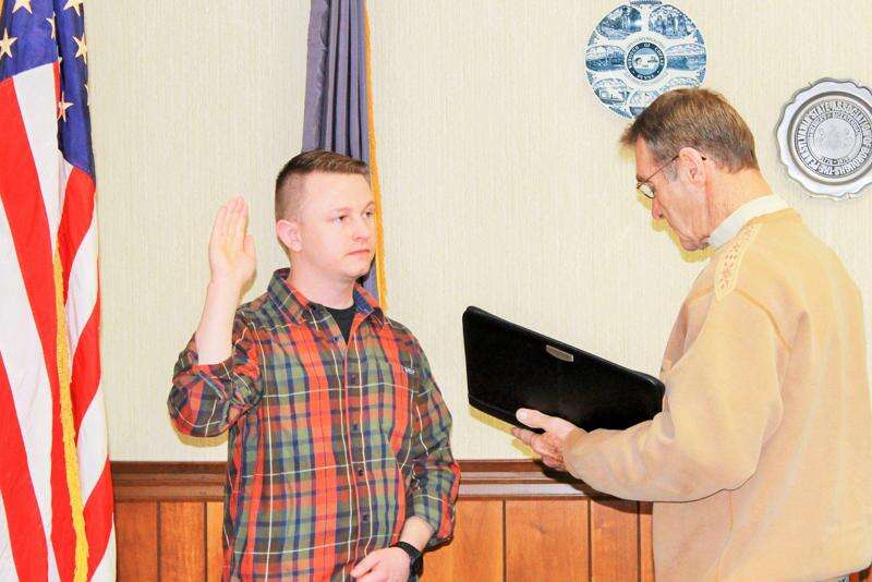 Coplay Borough Mayor Joseph J. Bundra, right, swears in John Milkovits of Moore Township as a new part-time police officer. "This job is much closer to home," said Milkovits. "I worked as a police officer in Summit Hill for five months and before that I worked at the Lehigh Valley International Airport for Homeland Security for 11 years." The swearing in ceremony took place Jan. 20.