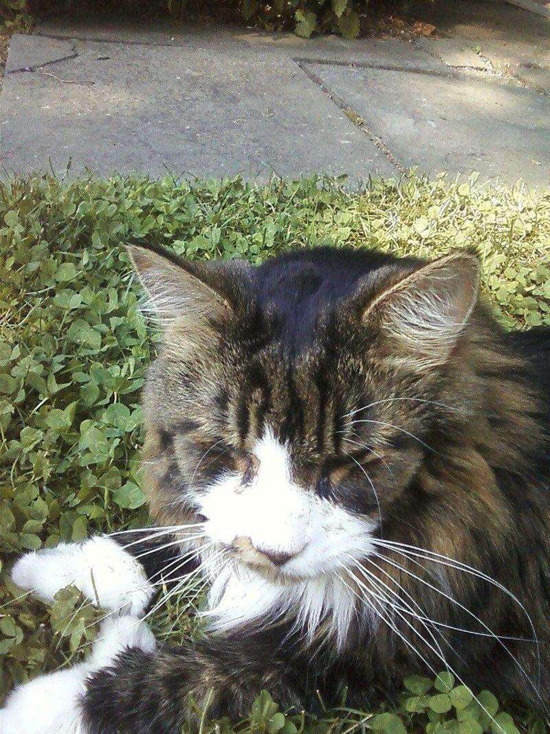 Henry was a fun cat, and very people-oriented. He came to us when we'd call his name and would ring a bell on the back door to be let out, much like a dog. He was also polydactyl which made him even more unique. He was 14 years old when his health started deteriorating and he was put on fluids as well as different medications taken twice a day, two kinds of eye drops three times a day and a special food. He tolerated it all and he tried to keep an upbeat attitude about everything. The day I took him to the vet to be put to sleep, he could no longer breathe correctly from his nose, his eye was once again inflamed and swollen, he refused to eat and we could tell he was in pain. All these things literally came together in a day and a half. He rested his head on my shoulder and I knew he could take no more.