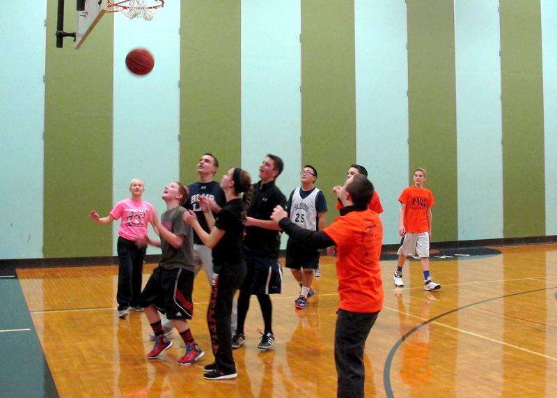 Salisbury Middle School held its annual dance-a-thon Jan. 30 and 31 providing a variety of activities for students to participate in during their 12-hour stay at the school. ABOVE: Students enjoy a basketball game while taking a break from dancing.