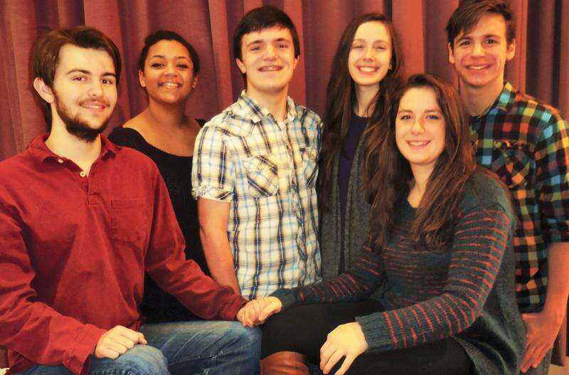 Moravian Academy 'Hello Dolly!' cast, from left: Griffin Smith-Nichols (Mr. Vandergelder), Madeline Weston (Irene Molloy), Alec Cohan (Cornelius Hackl), Kylee Jacoby (Minnie Fay), Megan Keller (Dolly Levi) and Noah Ruebeck (Barnaby Tucker Jr.).