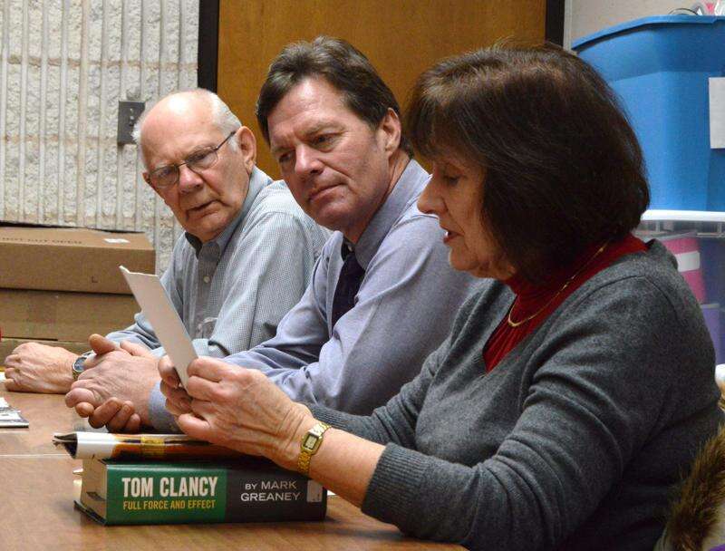 PRESS PHOTOS BY STACEY KOCH Seated from left are Steve Flytuta of Northampton, Chris Chatenka of Bath and Dorothy Ambrosino of Moore Township. During the Civil War discussion group meeting held at Northampton Area Public Library Feb. 11, Ambrosino read to the rest of the group some interesting facts she learned from an article on slave holders during the Civil War.