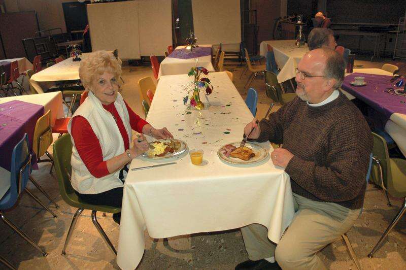 Pat Brosky, and father Jonathan Mayo are among the many people enjoying breakfast at St. Stephen's Episcopal Church, Whitehall, Feb. 7. The church is located on Mechanicsville Road in Whitehall.