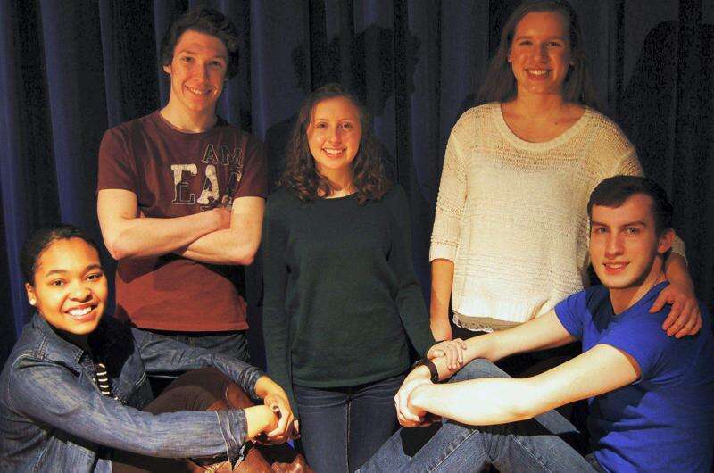 Salisbury High School 'Pippin' cast, from left: Hali Letlow (Leading Player), Brad Sartorius (Charles), Carolyn Boulay (Berthe), Abigail Garrigan (Catherine) and Dane Galbraith (Pippin).