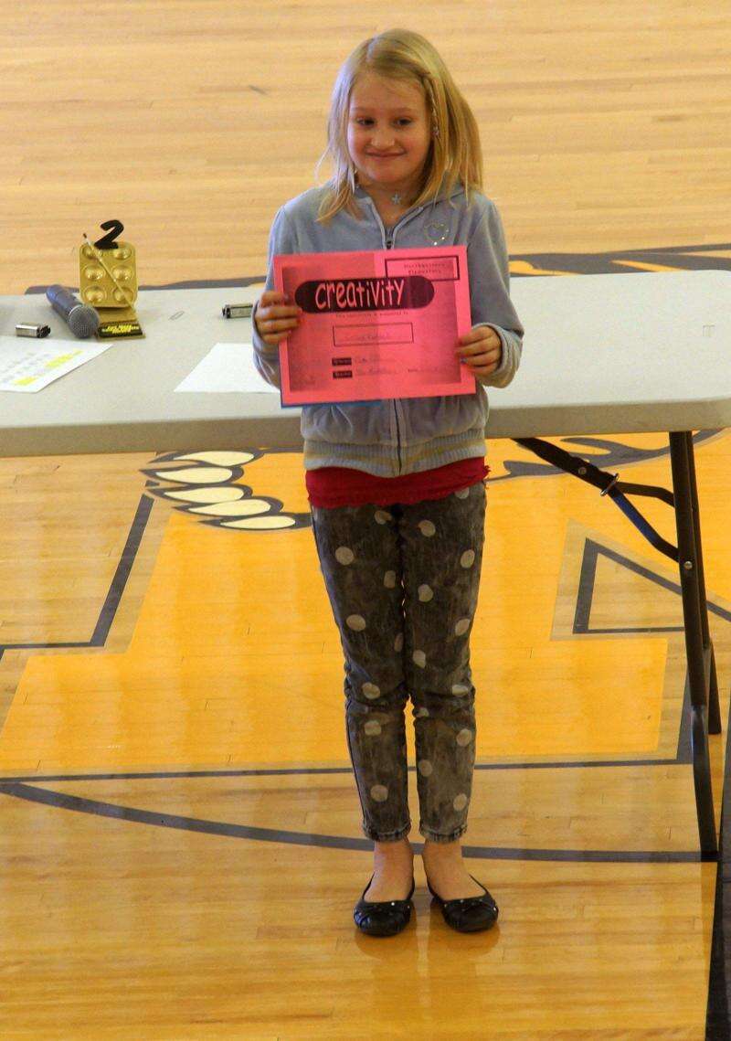 Student honors Tweet Published March 12. 2015 12:00AM by The Press Elementary students honored. PRESS PHOTOS BY LINDA DEIBERT Student Celina Ruddell displays the creativity award she was awarded.