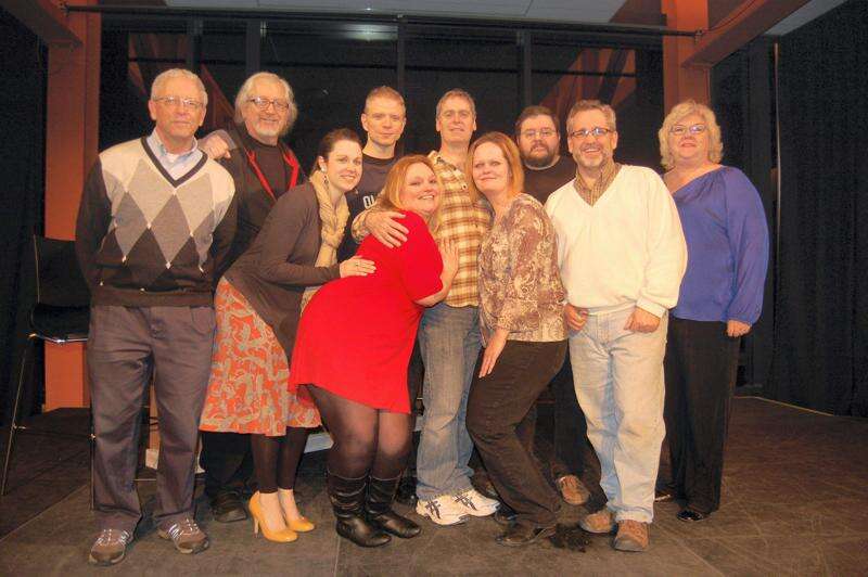 The actors play multiple roles, including Rebecca Wenhold-Kuhns, Mickey Brown, Jen Kurtz, Syd Stauffer and Mike Febbo.