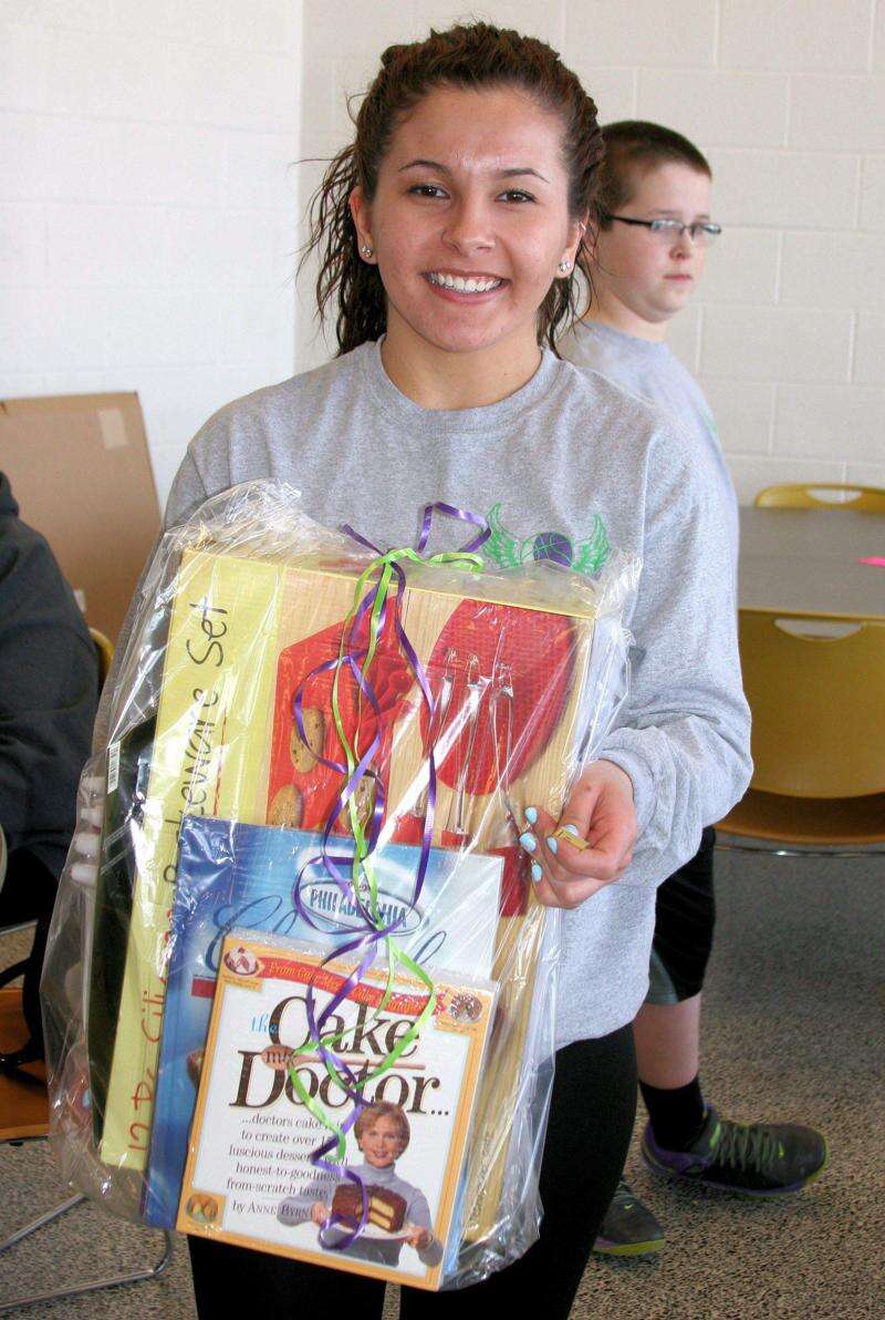 Right: Whitehall High School student Rebecca Rivas volunteers at the basket bingo. See photos of the sports competition on page A10.