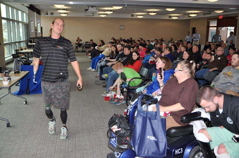 His audience included countless adults and youth throughout the auditorium who sat with their own prosthetics, their own original limbs lost to accident or medical conditions. The program was sponsored by the Lehigh Valley Amputee Support Group.