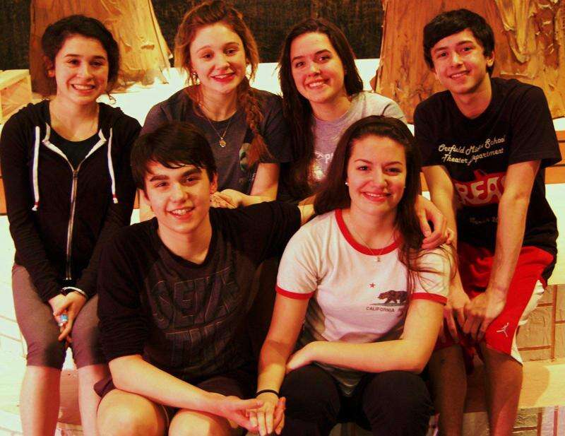 Parkland High School 'Into The Woods' cast, from left, front: Tyler Haney (The Baker) and Victoria Bartkavage (Baker's Wife), and back row, Hannah Hakim (Little Red Riding Hood), Megan Schmidt (Cinderella), Abby Kern (The Witch) and Reese Diaz (Jack).