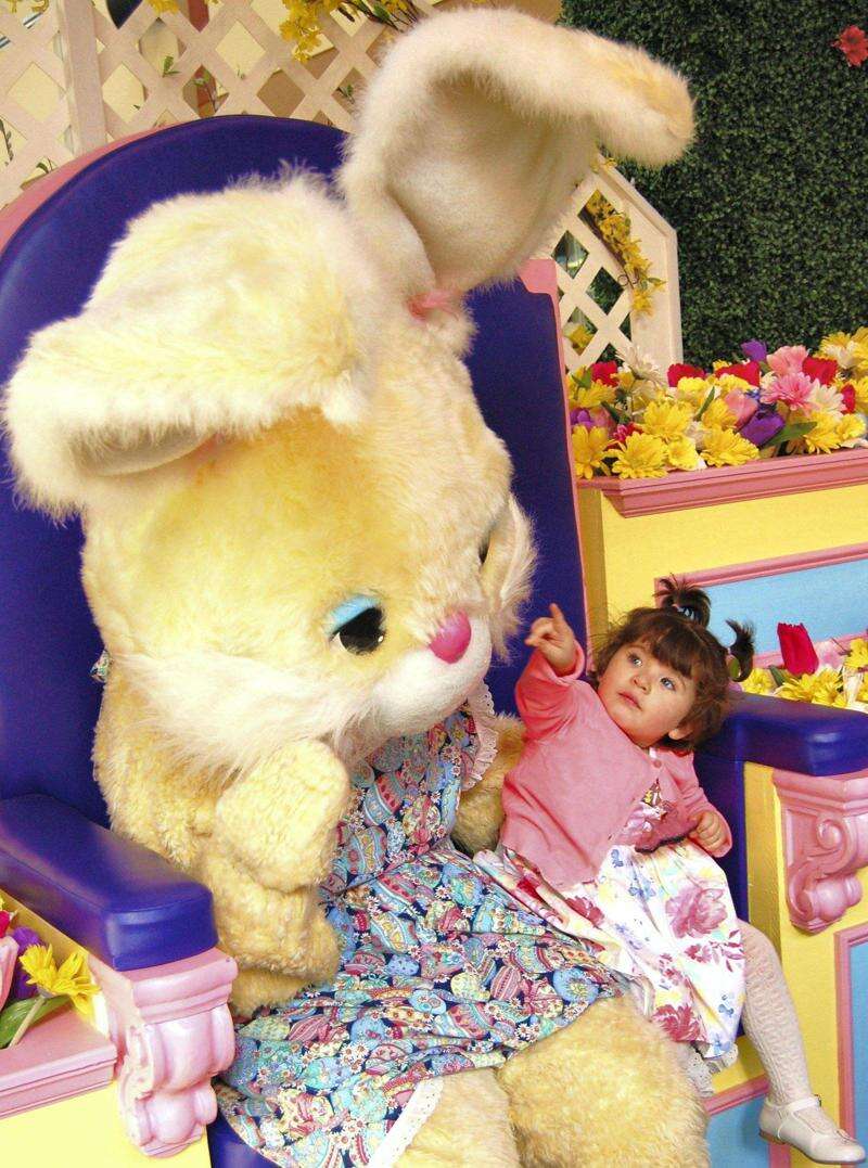 Press Photo by Tim Gilman Arianny Garcia was all dressed up for her Easter Bunny photos which were taken in the Outlets at Sands in South Bethlehem. The 2 1/2-year old child was with her mother Jen Garcia from Fountain Hill. The photo booth will be open next weekend from 12 to 8 p.m., Friday and Saturday.