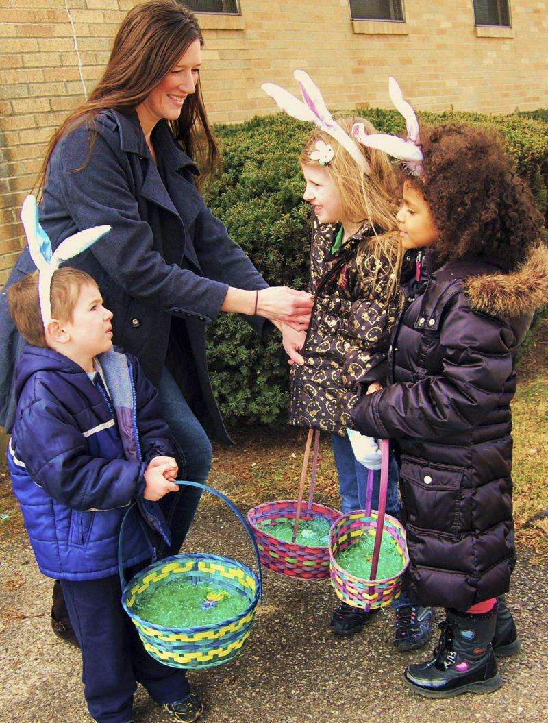 Bethlehem's annual Egg Hunt on the lawn below Memorial Pool took place despite the cold weather. Some 200 children and their families came all bundled up for the cold, many with hooded jackets or knit caps. The actual egg hunt part lasted less than 10 minutes, as the children scurried around picking up candy treats. The children are divided into three age groups from 3-8 years old.The event is sponsored and organized by the City of Bethlehem Recreation Bureau. The children left with lots of candy and smiles, especially those who won the large packaged chocolate Easter Bunnies. The top winners, one per age group, were: Korey Elliott, Grayson Szabo and Ragen Davre.