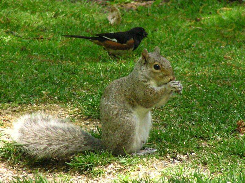 Gray squirrels were busy each fall finding, picking, eating and burying the red oak's acorns. It lowered the amount of raids on our feeders.