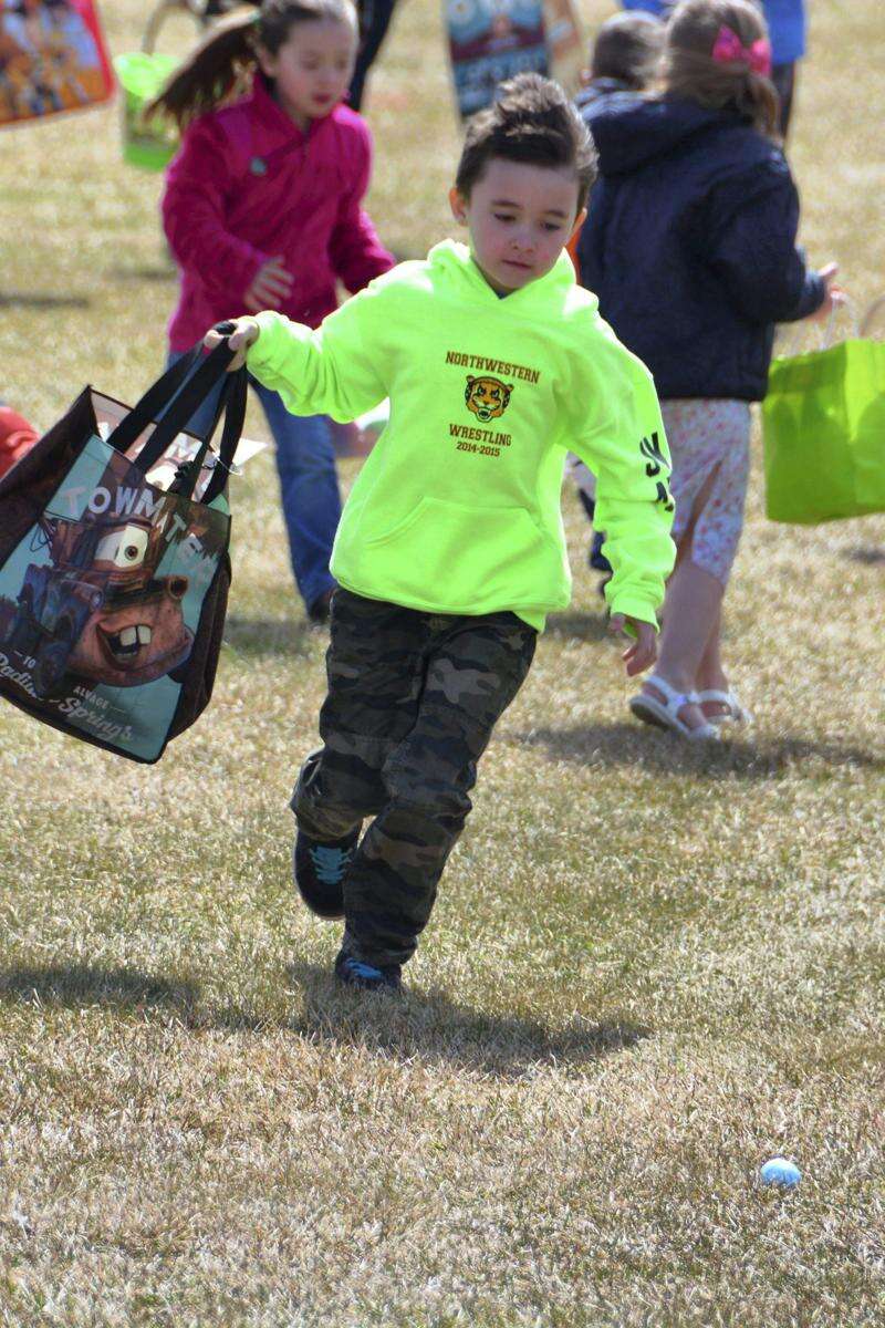 Jack McGinley of Fogelsville sees an egg and nails it during the Hope Community Church Easter egg hunt April 4 in Claussville. The event started with the Praise Band and ended with a light lunch. PRESS PHOTO BY LOU WHEELAND