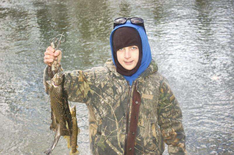 Above: Seth Clouse of Northampton tries his luck in Jordan Creek, Whitehall, on Saturday, the opening day of trout fishing. In all, he caught three, a rainbow, a brook and a brownie, using worms as bait.