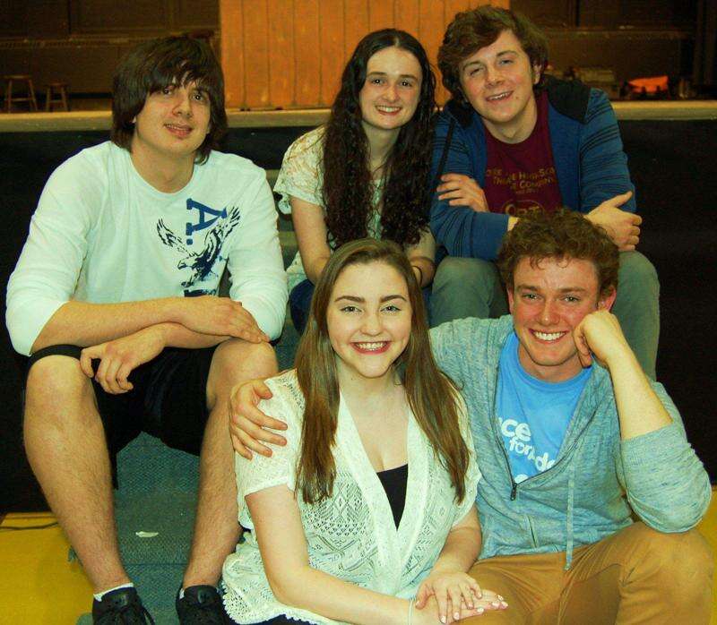 Notre Dame High School 'A Tale Of Two Cities' cast, from left, front row: Nicole Dischinat (Lucie Manette), Patrick Davis (Sydney Carton) and, back row: Luke Kenyon (Dr. Manette), Kathleen Capella (Madame Defarge) and Peter Gambino (Ernest Defarge).