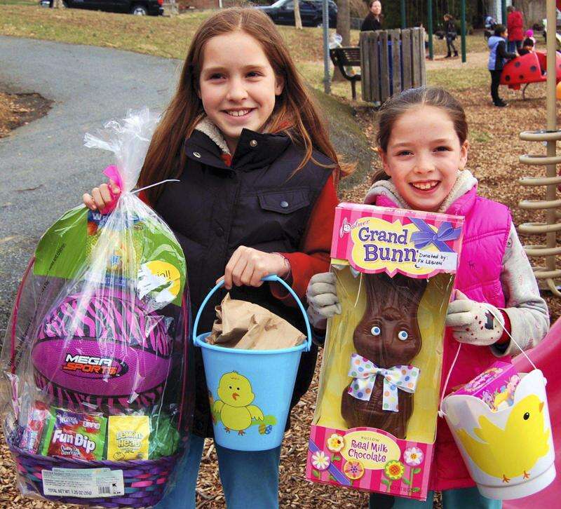 PRESS PHOTOS BY TIM GILMAN Sisters Maya and Sofia Nieto have plenty to smile about after the Fountain Hill Egg Hunt this past April 4 at the Stanley Avenue Playground. The sisters were lucky to win major prizes in addition to the regular Easter candy that covered the fields. Their parents, long-time Fountain Hill residents Miguel and Tara Nieto, were happy for their children who will likely remember this year's event more so than others.