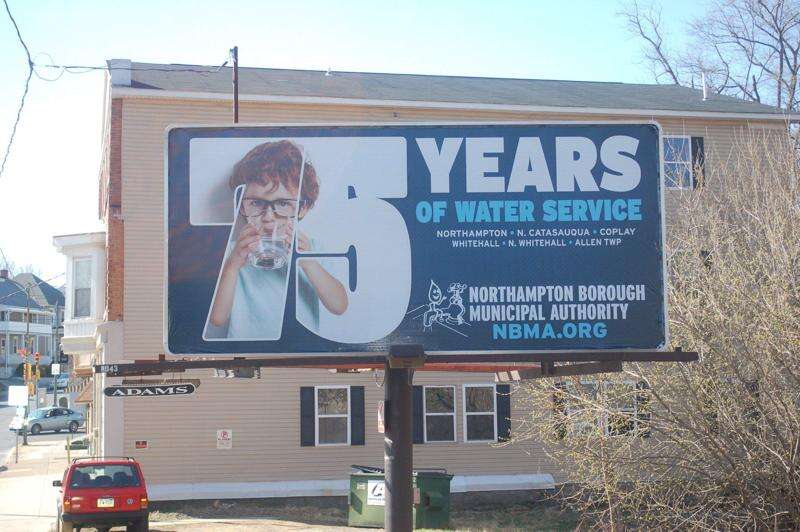 A billboard at Main Street and Lerchenmiller Drive announces the 75th anniversary of the Northampton Borough Municipal Authority, which serves Northampton, Allen Township, Coplay, Catasauqua and parts of Whitehall Township and North Whitehall Township.