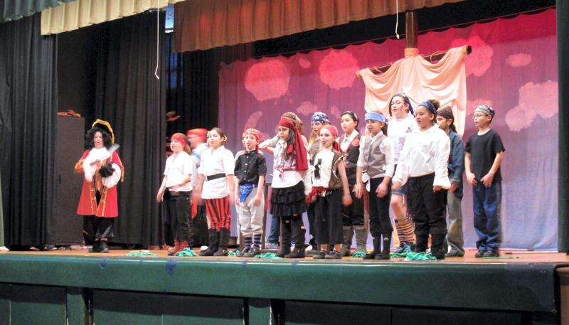 Captain Hook, played by Jack Mallon, gives orders to his crew on how to outwit Peter Pan in the St. Ann School production of Peter Pan, April 17 and 18 at the school, 435 S. Sixth St., Emmaus.
