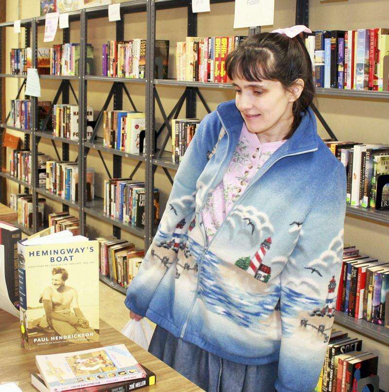Agnes Penny of Whitehall looks over the books available for purchase during the Coplay Borough Public Library's book and bake sale, held April 10 and 11. All funds raised went to the library's operating fund. Library Vice President Faye Schreiner reported the event was successful both days.