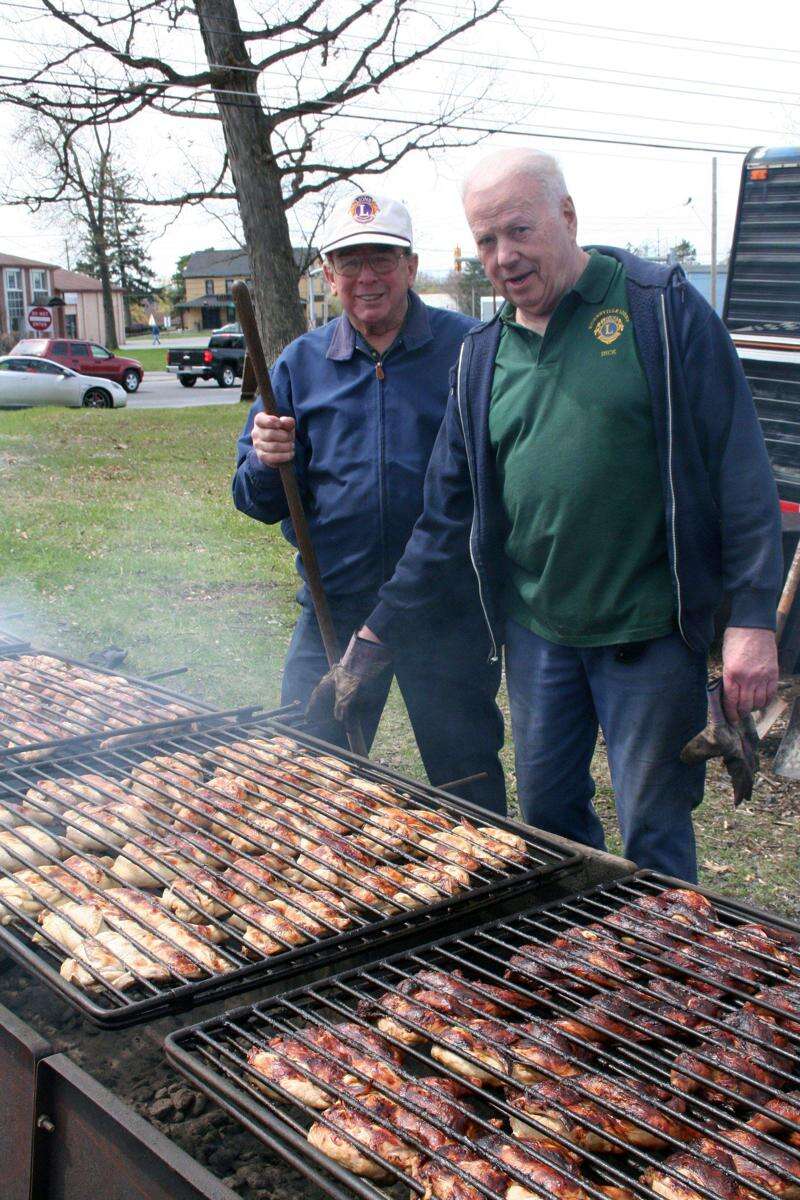 PRESS PHOTOS BY DEBRA PALMIERI Kuhnsville Lions Don Schumaker and Dick Schreiner barbecue chicken to perfection in the grove at Jordan United Church of Christ, South Whitehall.
