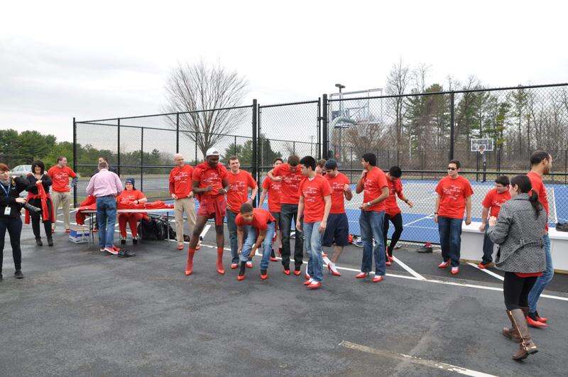 The event featured male students and faculty stepping out in red high heels to "walk a mile in her shoes" to provide a better appreciation of the problem of sexual violence, particularly toward women, in the school's first-ever high-heeled walk by males around campus.