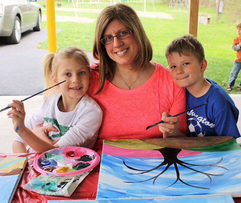 Below: Melissa Conklin of Washington, N.J., enjoys time with her daughter, Carly, and son, Henry, during Bath's Painting in the Park, held Saturday at Keystone Park. Participants paid a fee to participate in the fundraiser to benefit the American Cancer Society. This event was the first in a Turn Bath Pink initiative by Mayor Fiorella Reginelli Mirabito.