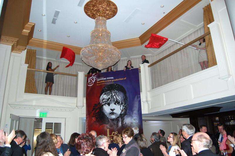The announcement that "Les Miz" would open the 2015 season was made at a special event for PSF subscribers and supporters Jan. 15 at The Cosmopolitan Restaurant, Allentown. The "Les Miz" banner was unfurled from the balcony and flags were waved.