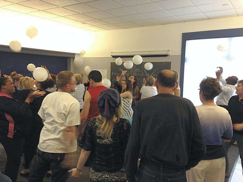 Beth Bitler of PFSA in Harrisburg encouraged participants to interact with families if it seems that a child may be being abused. She encouraged empathy with parents who seem overwhelmed by childcare and "which buttons to be aware of" in their own feelings. She led participants in a game with balloons. Keeping the balloons in the air first singly, then as a group, showed that when people get involved "then the whole community is going to do a better job."