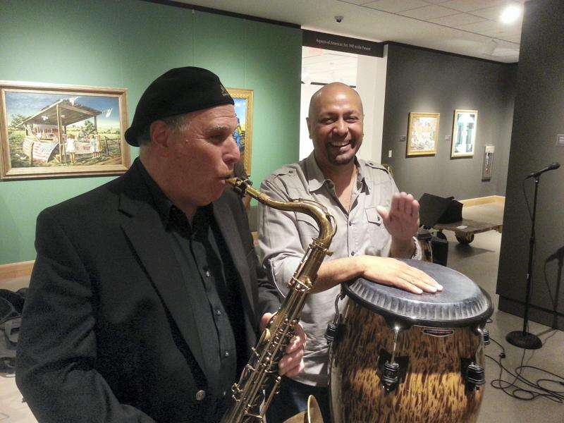 PRESS PHOTO BY CAROLE GORNEY Allan Meyerson and Hector Rosado, shown with the conga drum, were featured musicians at a Latin Jazz program at the Allentown Art Museum - part of a weekend Jazz Fest held in various locations throughout the city. Meyerson played the saxophone, flute and piccolo.