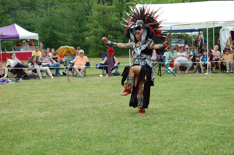Powwow in the park Tweet Published May 28. 2015 12:00AM by The Press Ontelaunee Park, Lynn Township, welcomes powwow. PRESS PHOTOS BY ELSA KERSCHNER Leticia Guiteraz dances and chants to demonstrate Aztec customs at the powwow.