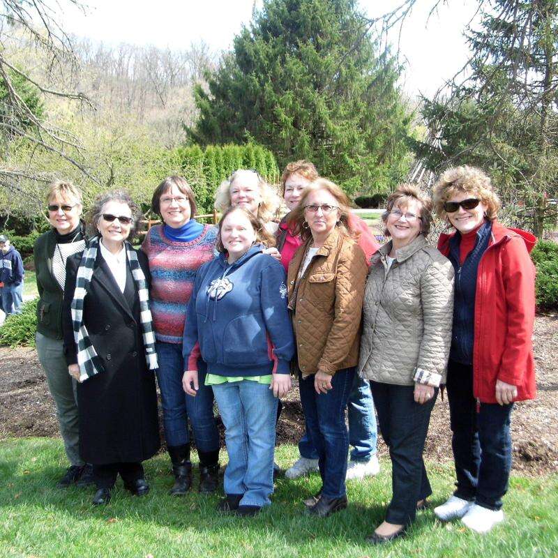 PRESS PHOTOS BY JENNIFER BODISCH Celebrating its 60th anniversary, Parkland Garden Club members Jean Buenzly, Bernie Marushak, Darlene Wenhold, Celie Turner, Megan Stanley, Mary Stanley, Patti Molitoris, Barbara Campbell and Debbie Barhight celebrate the 35th Arbor Day tree planting at the Lehigh Valley Zoo, Schnecksville.