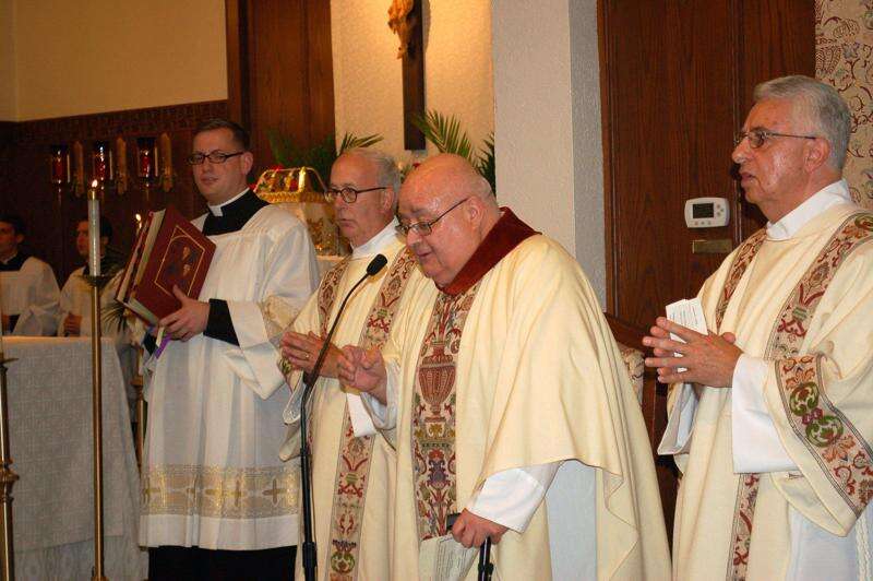 The special day began with a Silver Jubilee Mass of Thanksgiving at 3 p.m. at the church, 22nd Street and Washington Avenue. Members packed the pews as a procession of more than 40 priests and monsignors, led by the Most Rev. Ronald W. Gainer, D.D., Bishop of Harrisburg, entered the church. Several nuns, who taught some years back when the church had an elementary school, were present.