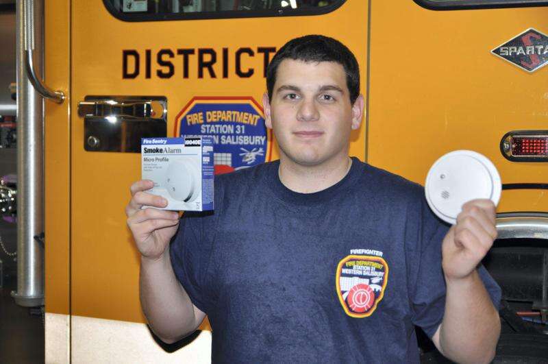 Salisbury residents who have areas of their home unprotected by a smoke alarm can receive them at no cost from Western Salisbury Fire Department. WSFD firefighter Sean Quigney displays the battery powered alarms acquired by the fire department through a public safety grant. To request alarms, call WSFD chief engineer Dev Kannon at 610-927-3523, or by email at dkannan@salisburytownshippa.org.