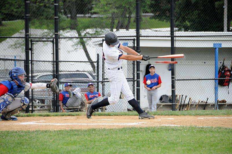 Press photo by Rob Merchant Mike Mittl breaks his bat during a recent Wanderers NorCo Legion game against Nazareth.