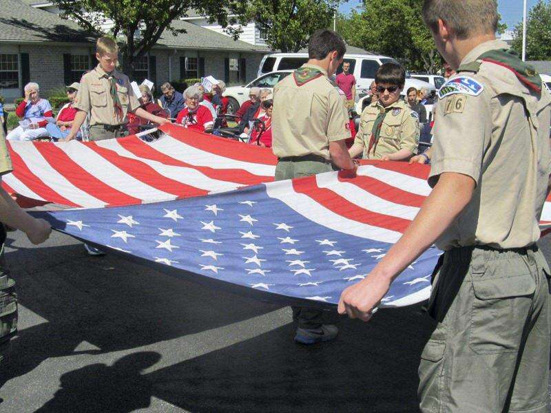 Nazareth Boy Scout Troop 76 conducted a flag retirement ceremony before about 100 guests and residents of Bethlehem Township's Country Meadows on Memorial Day weekend. Old Glory was lowered for the last time, methodically cut and incinerated by scouts who have yet to serve their nation. A new flag was also raised for the first time.