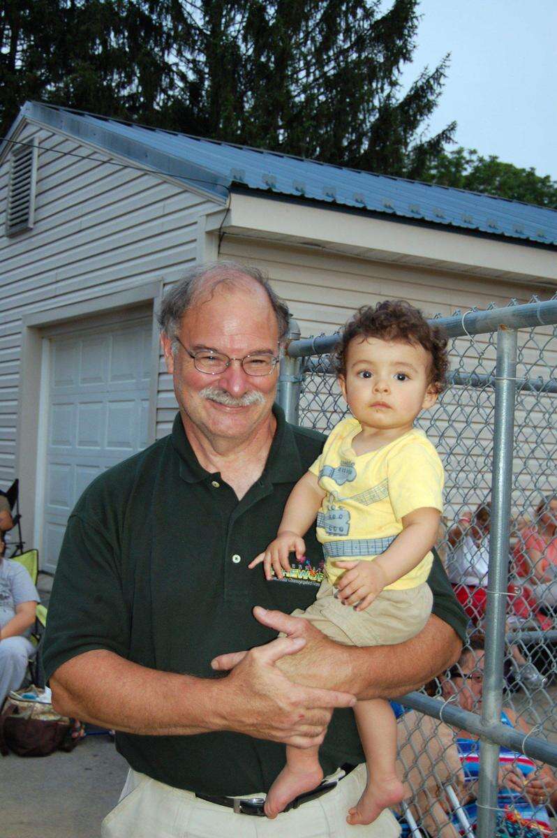 John Kemps, owner of Celebration Fireworks, Slatington, holds his grandson Sebastian Kemps as they wait for the fireworks display to begin July 3 at Breinigsville Park, Upper Macungie Township. PRESS PHOTOS BY SUSAN BRYANT